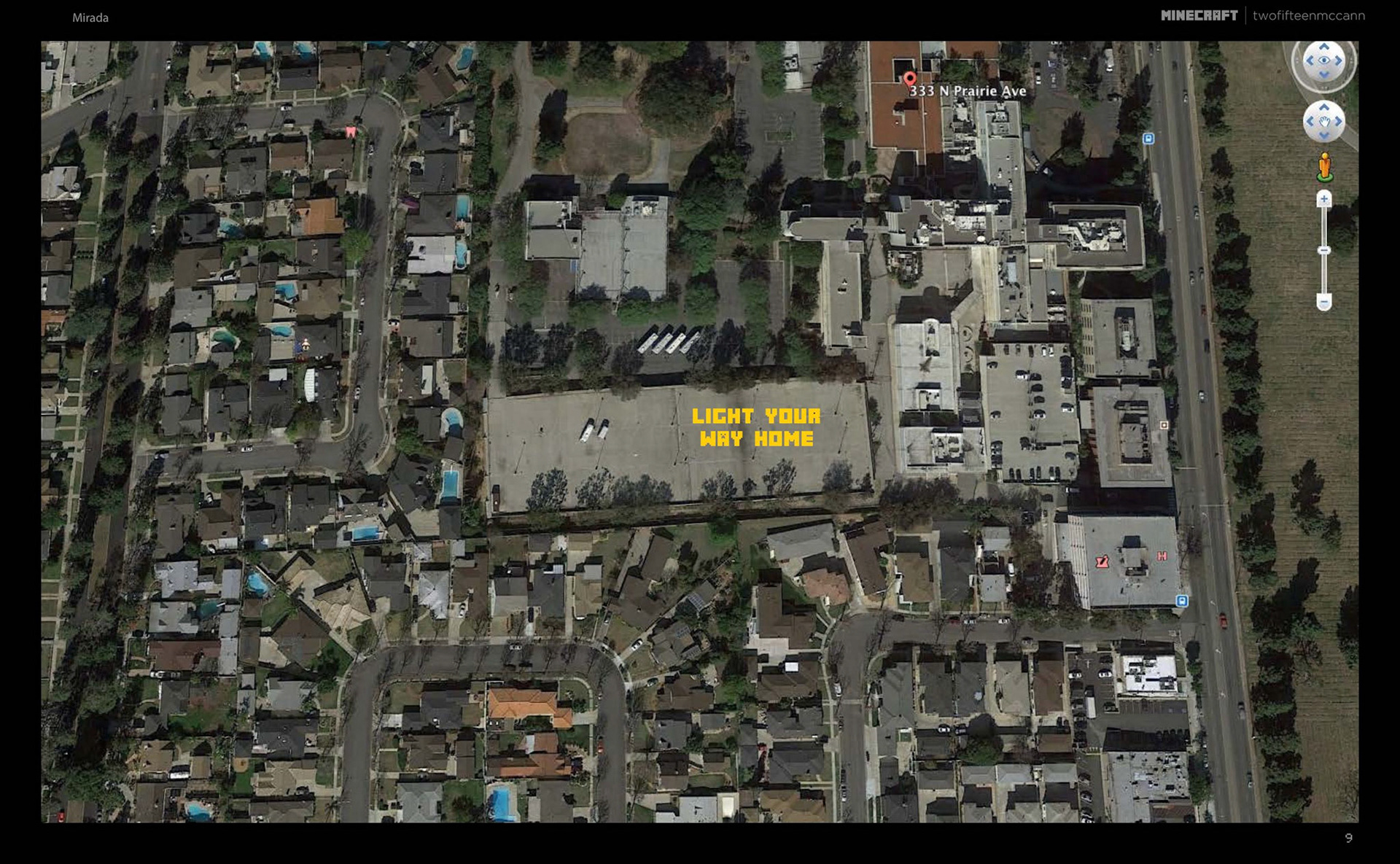 Installation near LAX for Minecraft game. Passengers flying into LAX saw the digital sign light up as Minecraft players discovered new regions around the game.